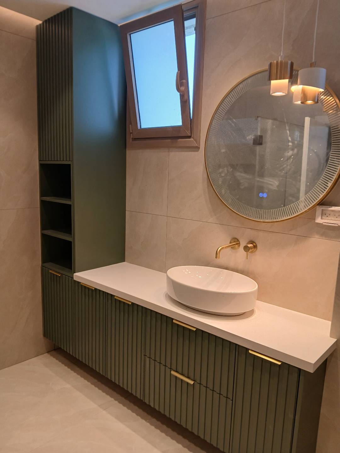 / ארון חדר מקלחת בצבע ירוק עם חירוץ
