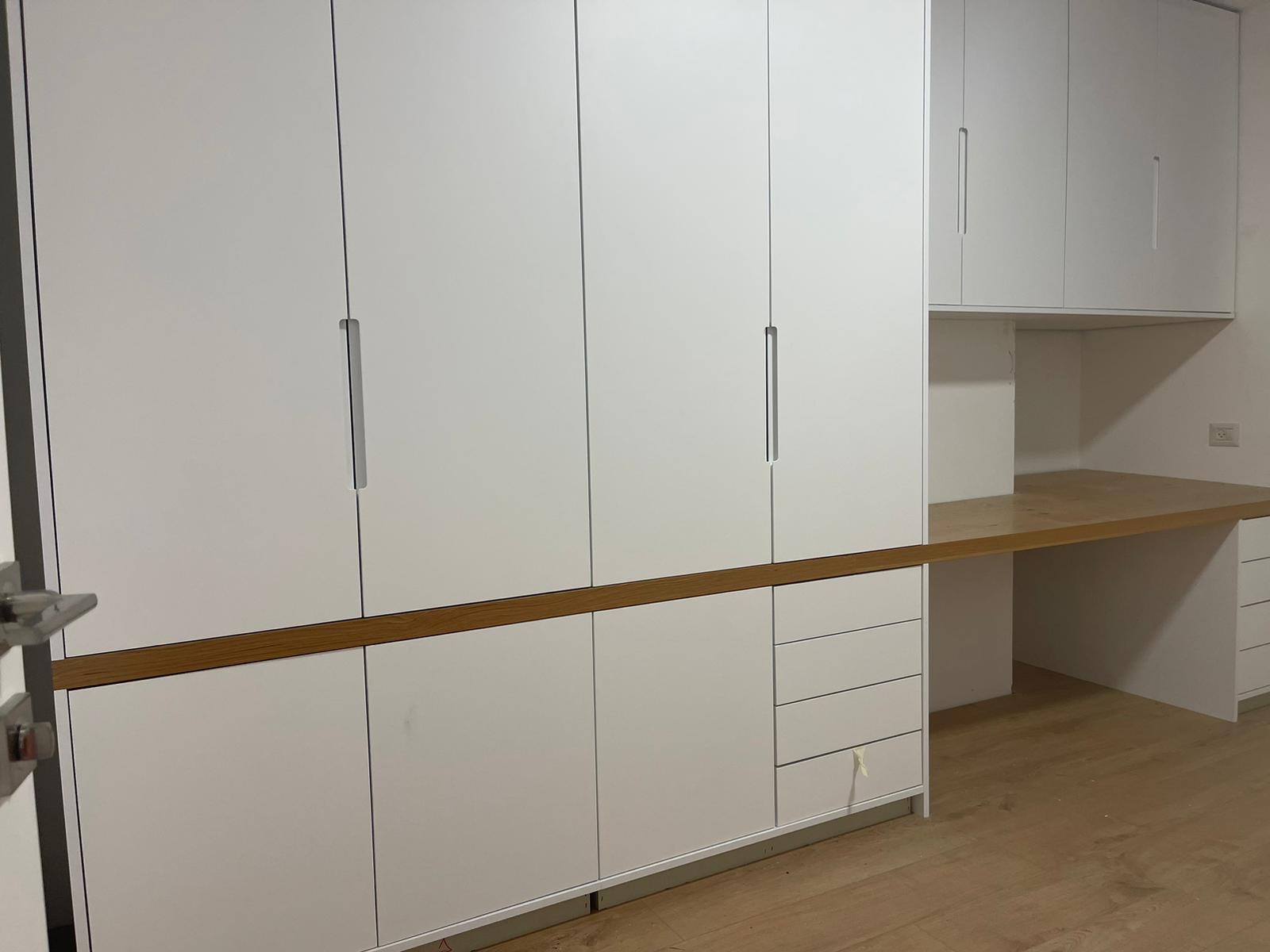 / ארון 4 דלתות+ארון תלוי בשילוב שולחן בצבע עץ טבעי