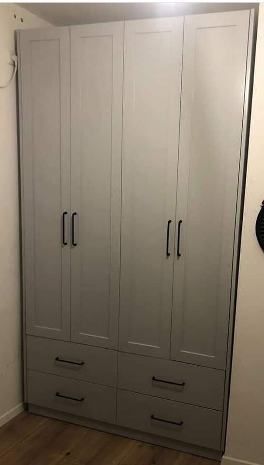 / ארון 4 דלתות ומגירות בציפוי פורמייקה וחירוץ עם ידיות בצבע שחור