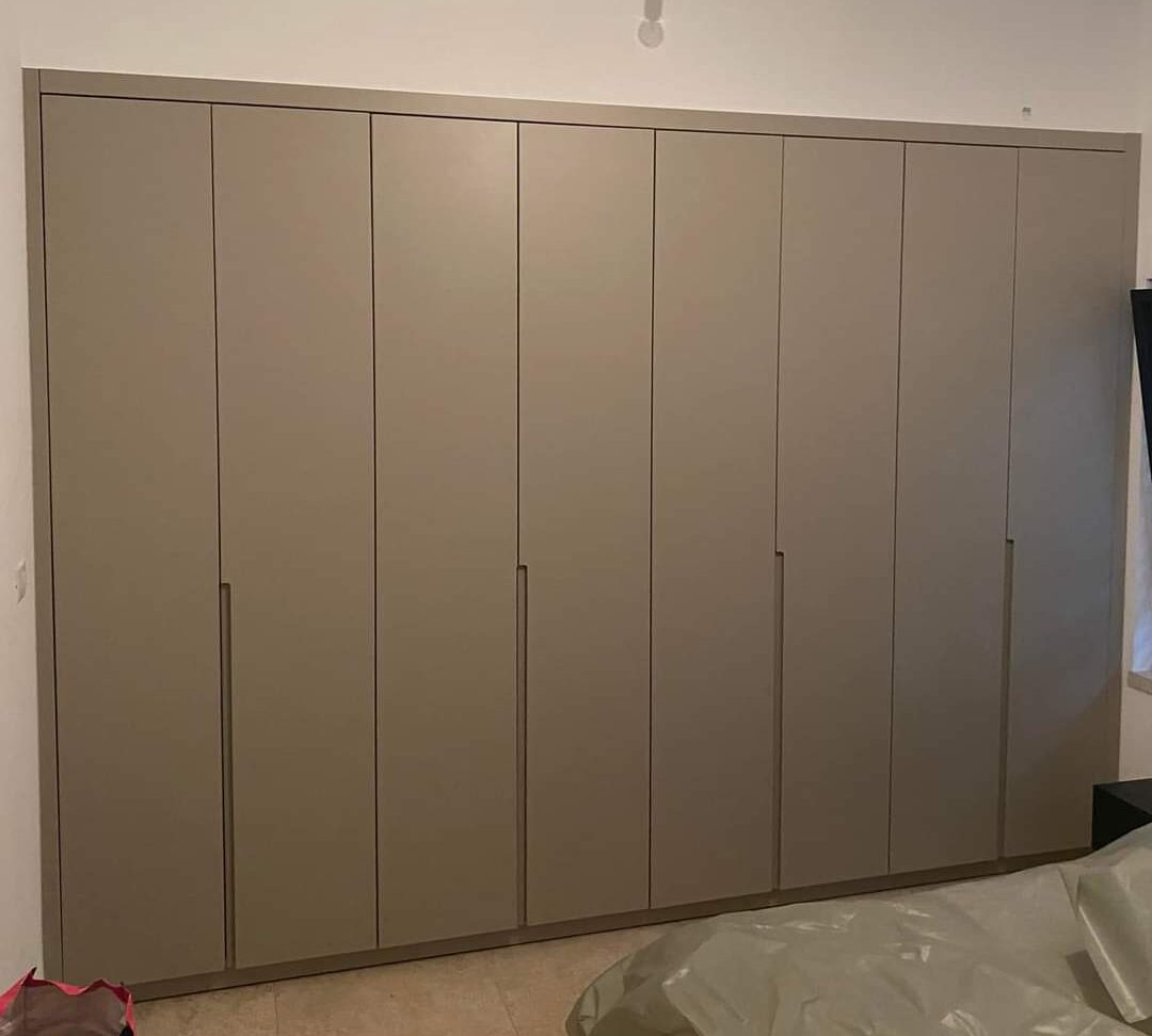 ארון 8 דלתות בציפוי פורמייקה בצבע אפור עם ידיות אינטגרליות
