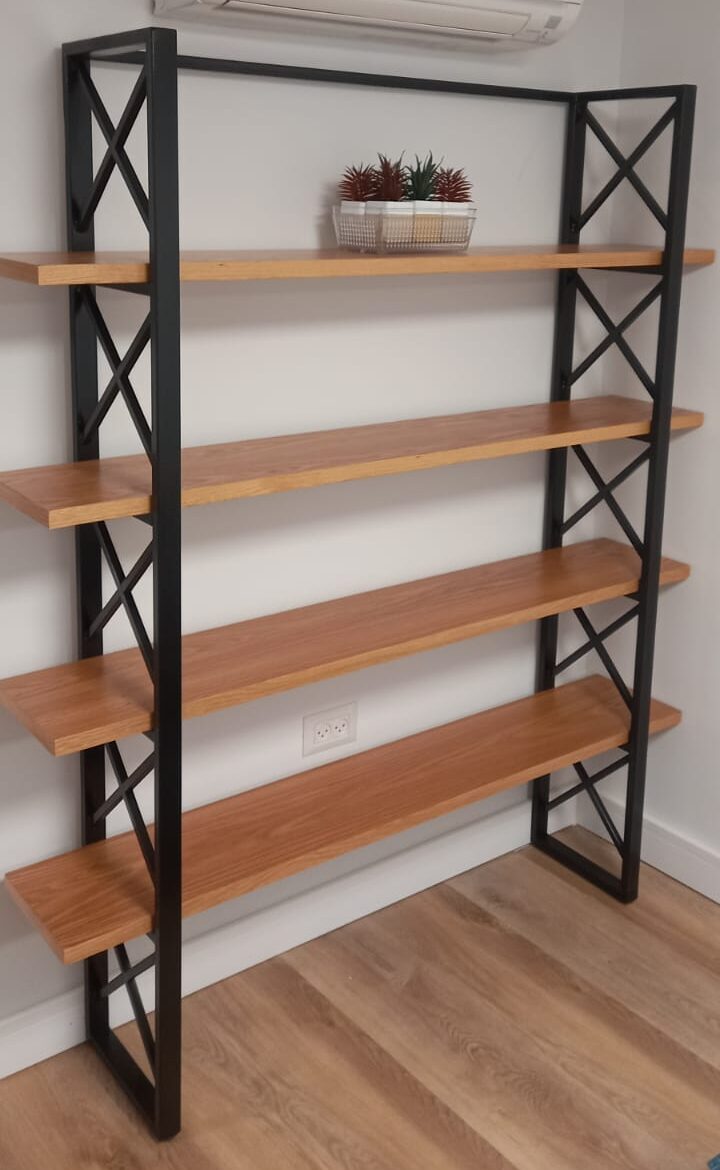 / מדפי עץ בשילוב מתכת בצבע שחור